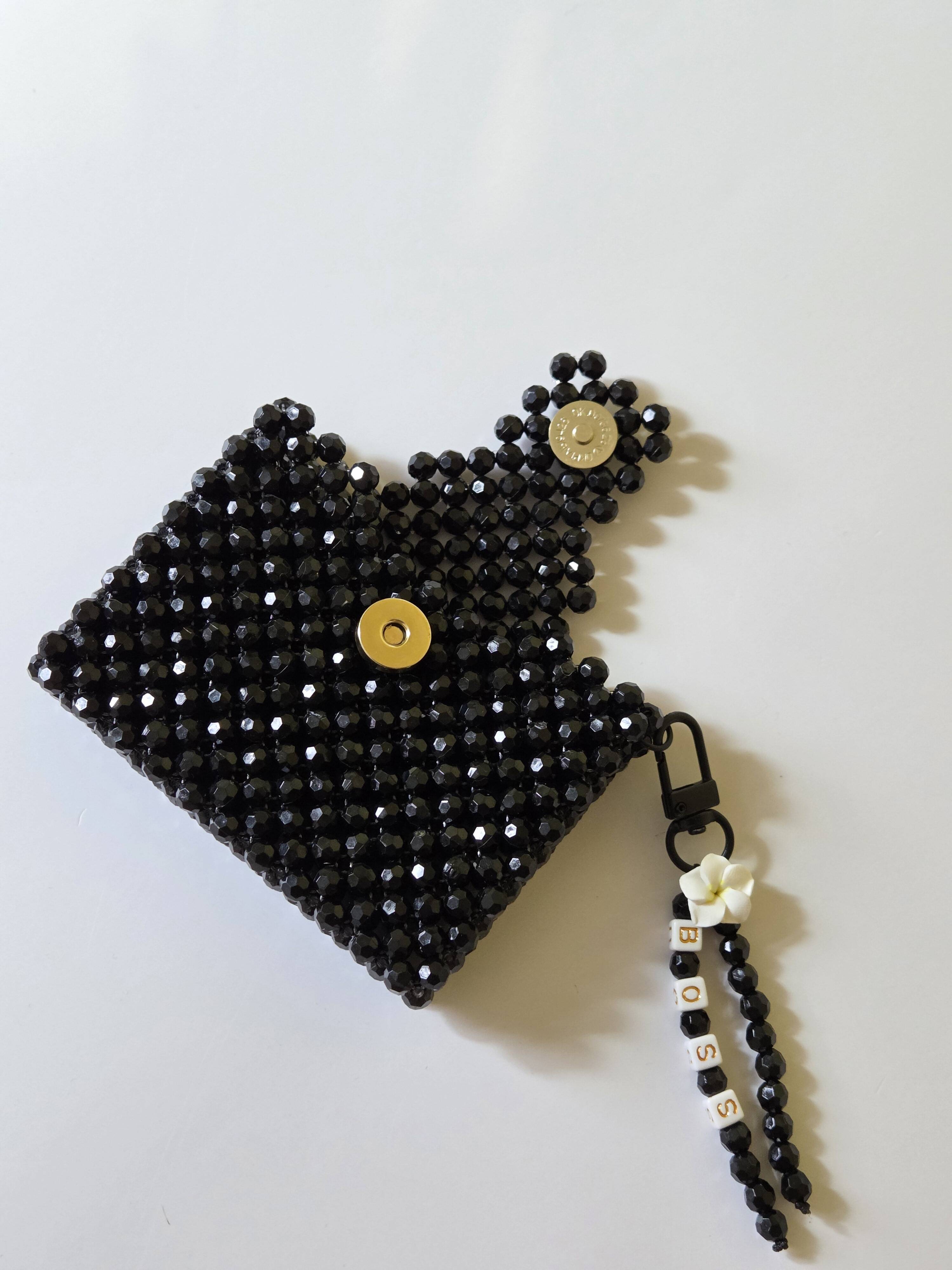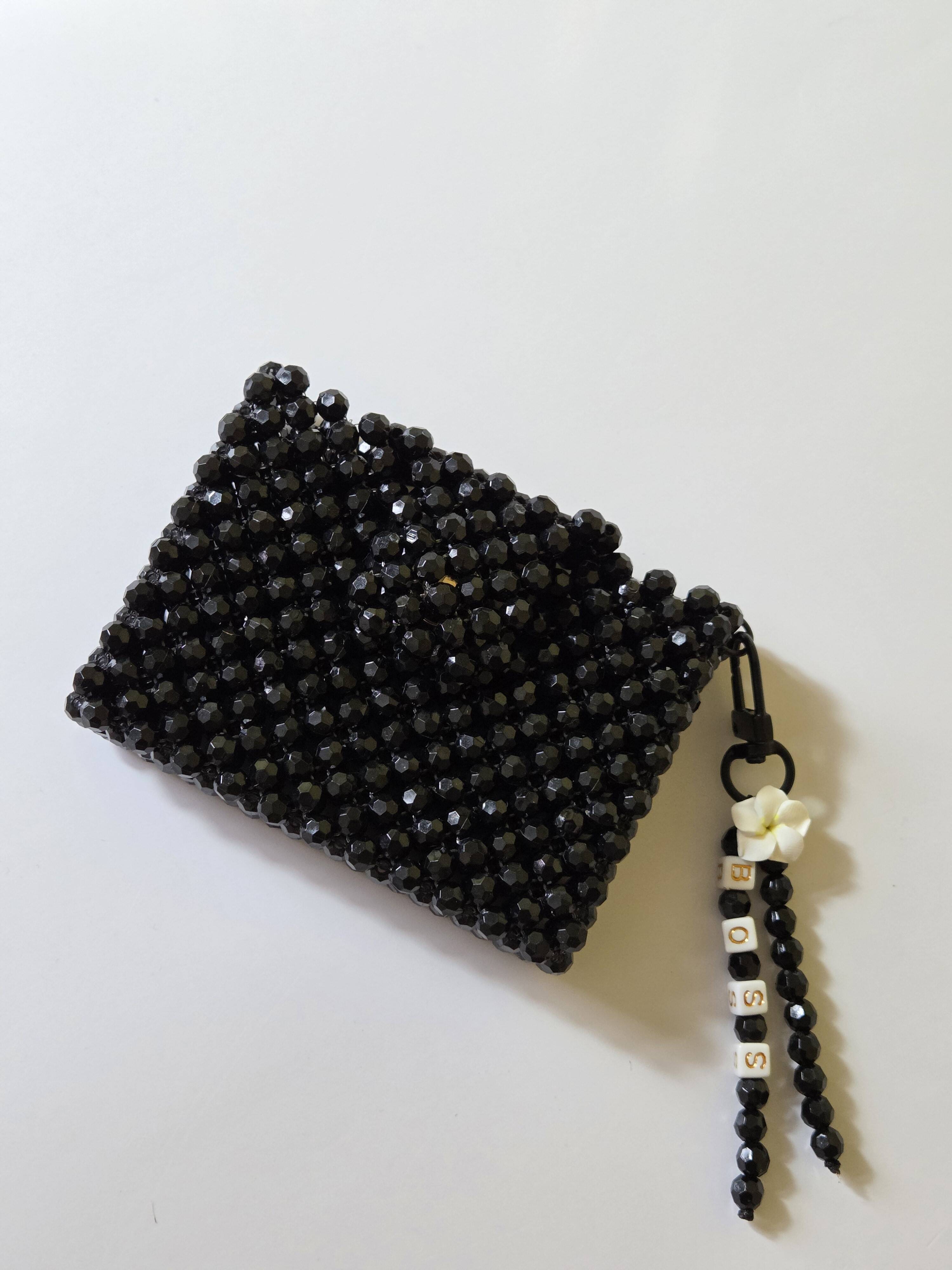 Handmade with premium acrylic beads, this double sided card holder fits cards, cash or coins with ease.