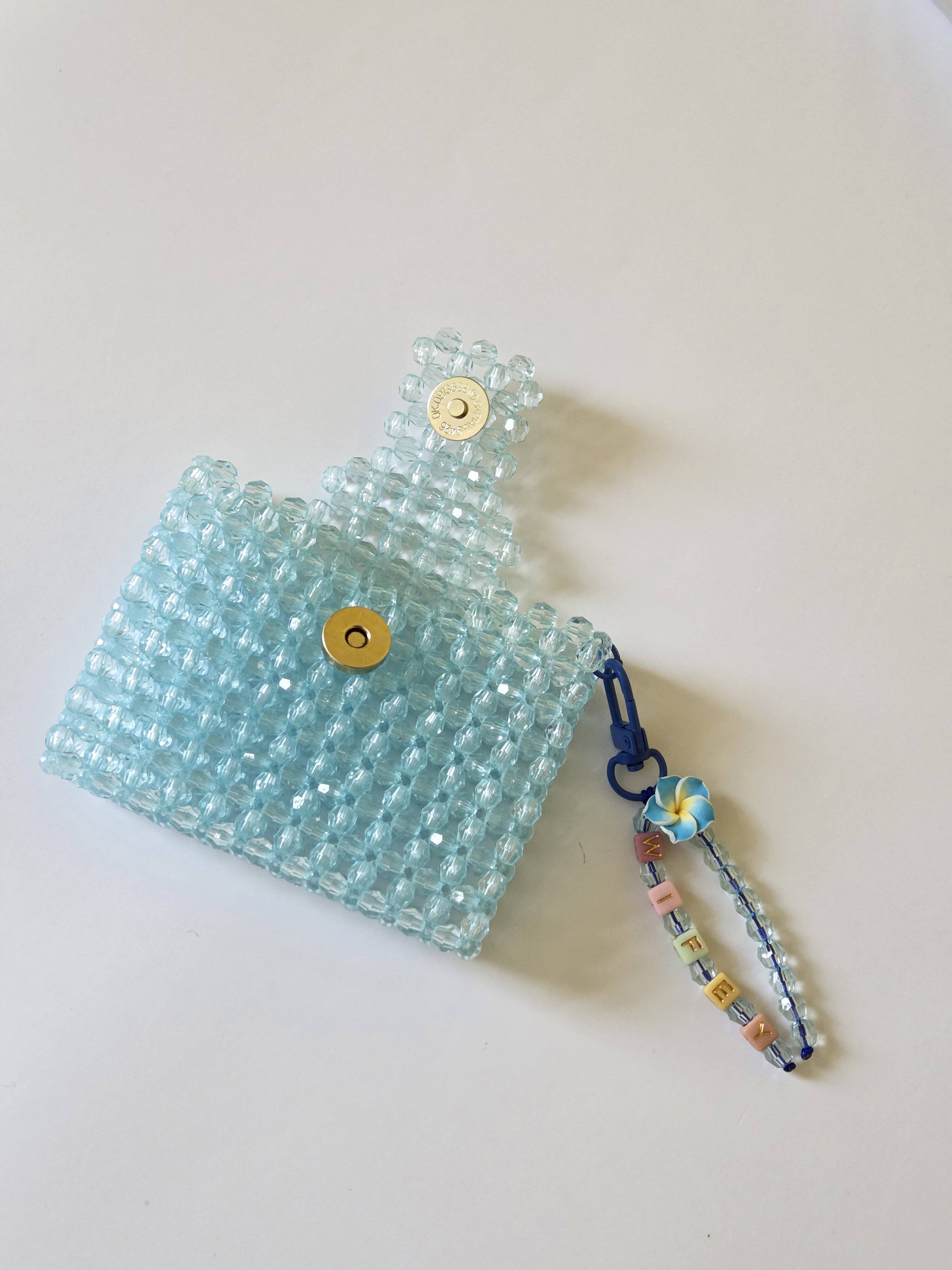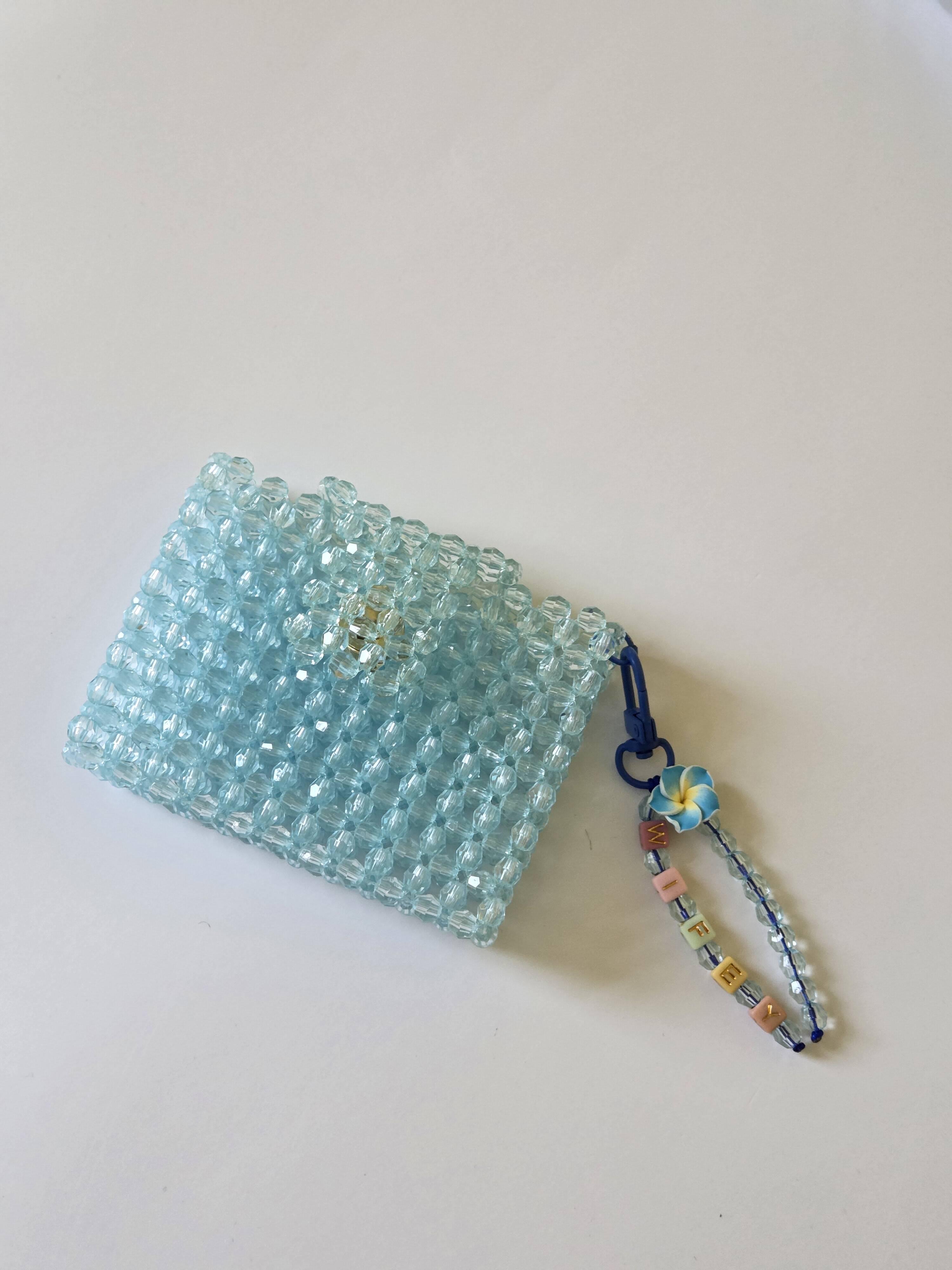 Handmade with premium acrylic beads, this double sided card holder fits cards, cash orĀ coins with ease.