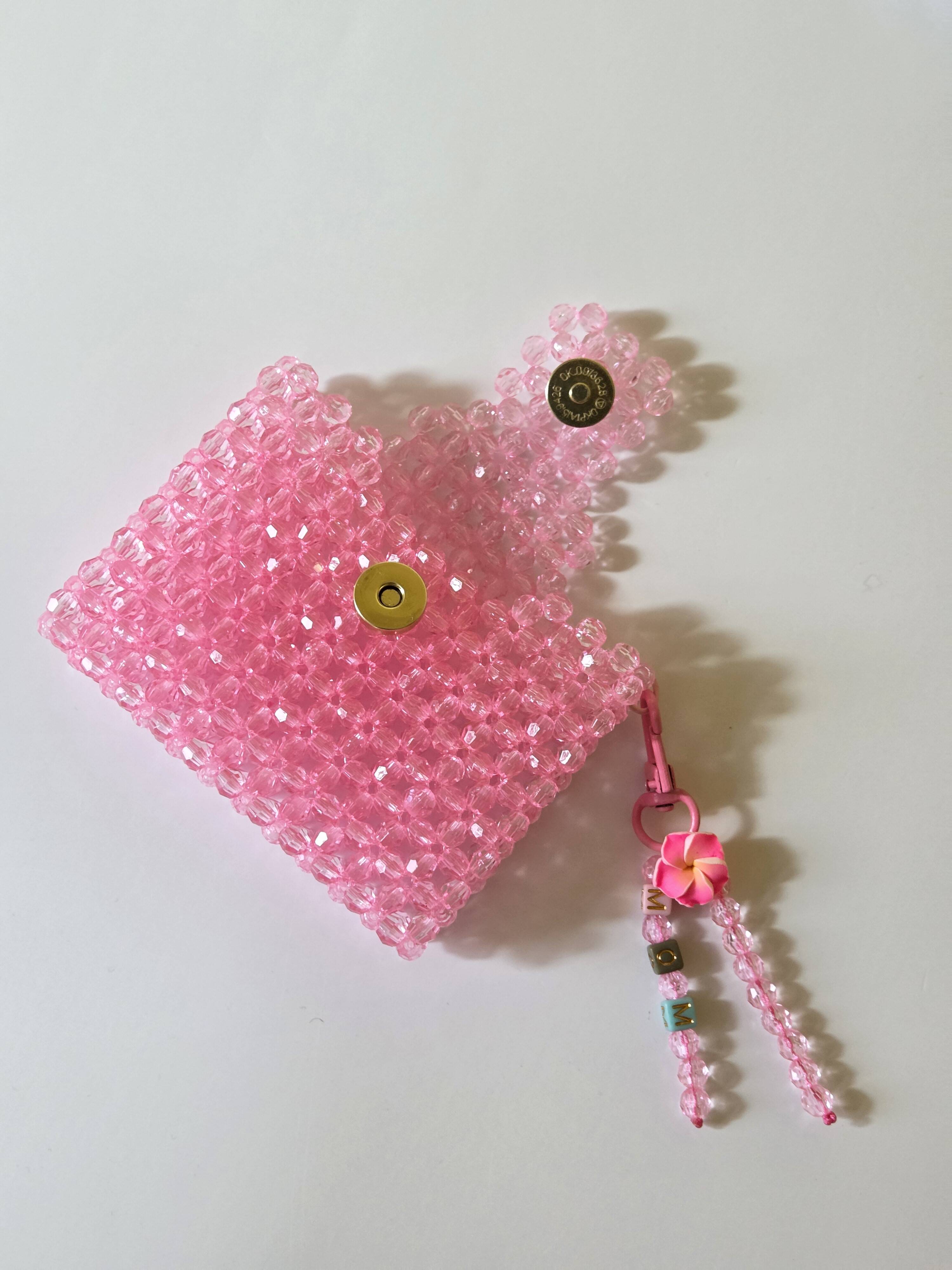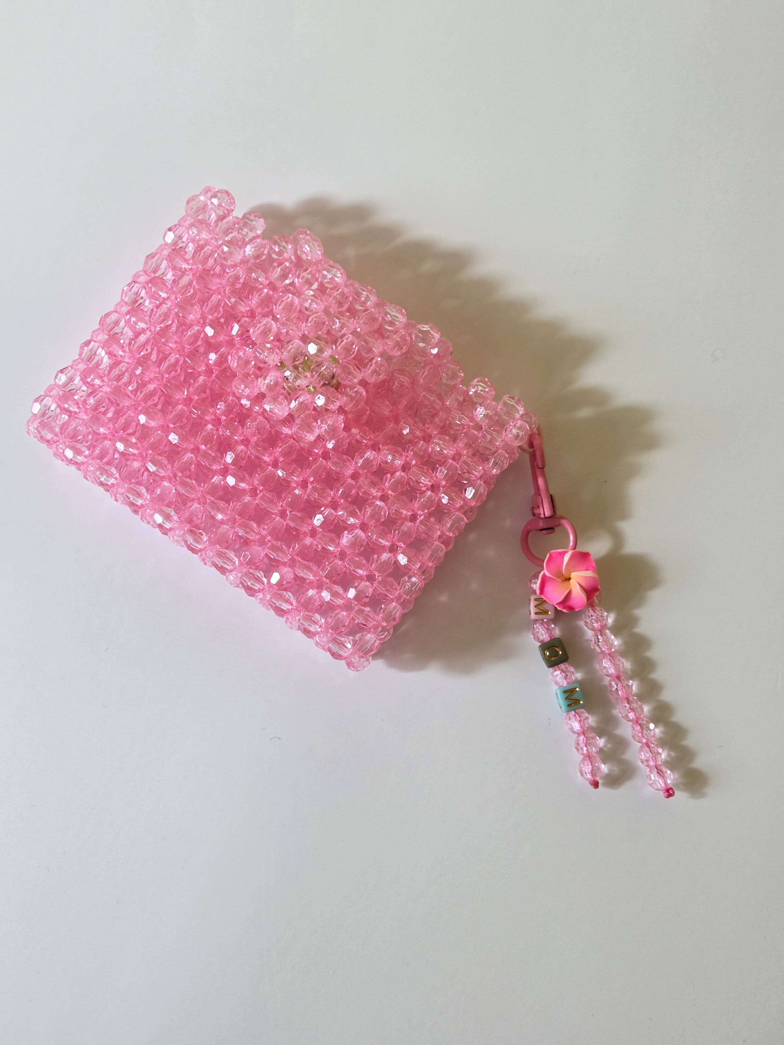 Handmade with premium acrylic beads, this double-sided card holder fits cards, cash or coins with ease.