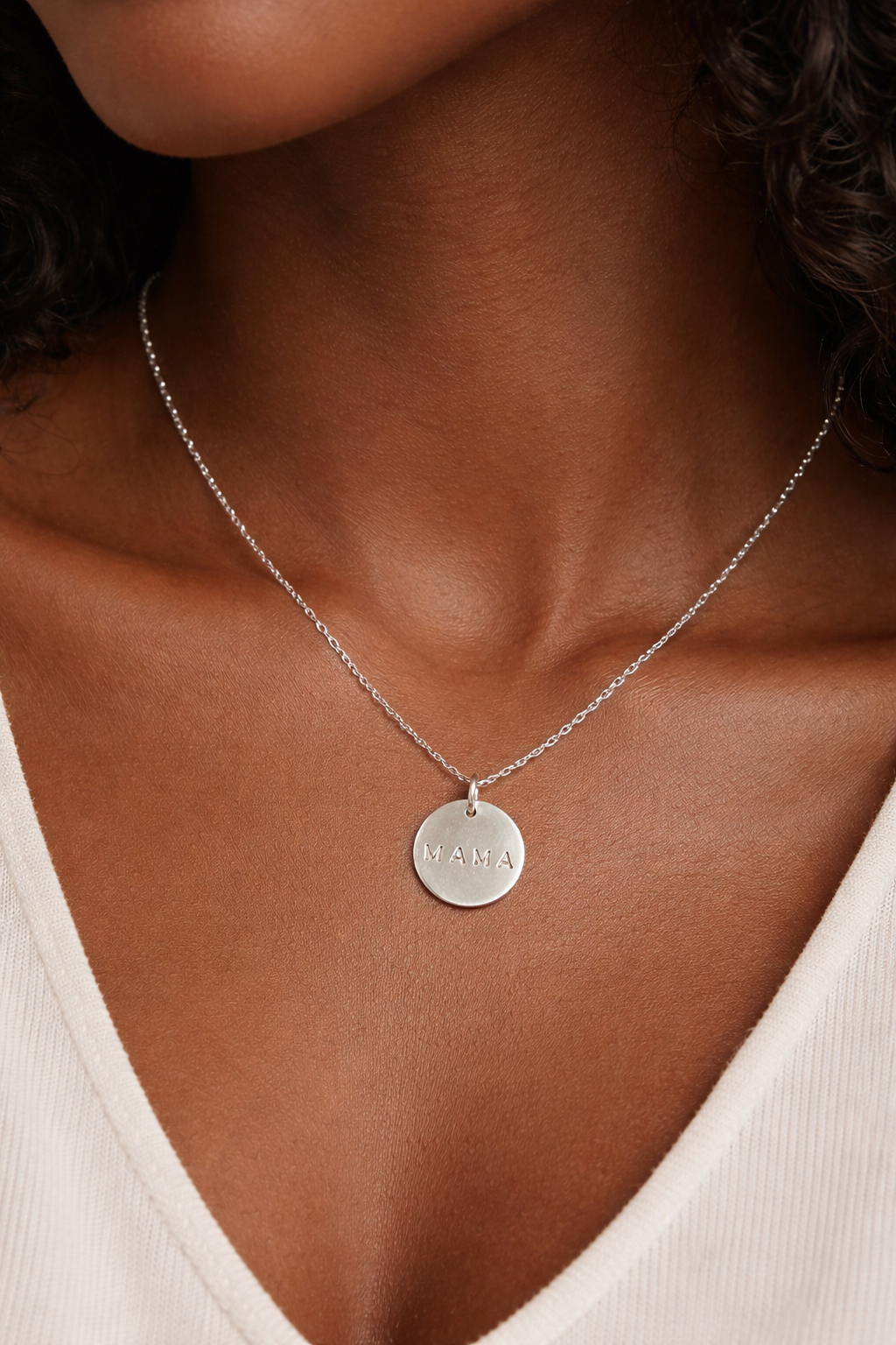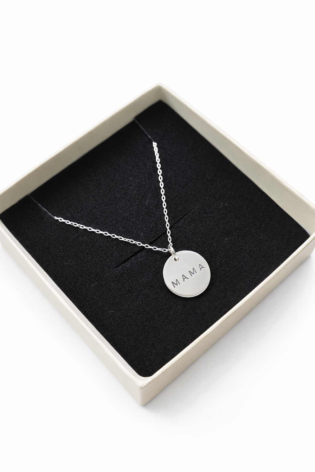 Crafted from genuine 925 sterling silver, this 15mm engraved “MAMA” pendant sits beautifully on a delicate chain simple, elegant, and perfect for everyday wear.