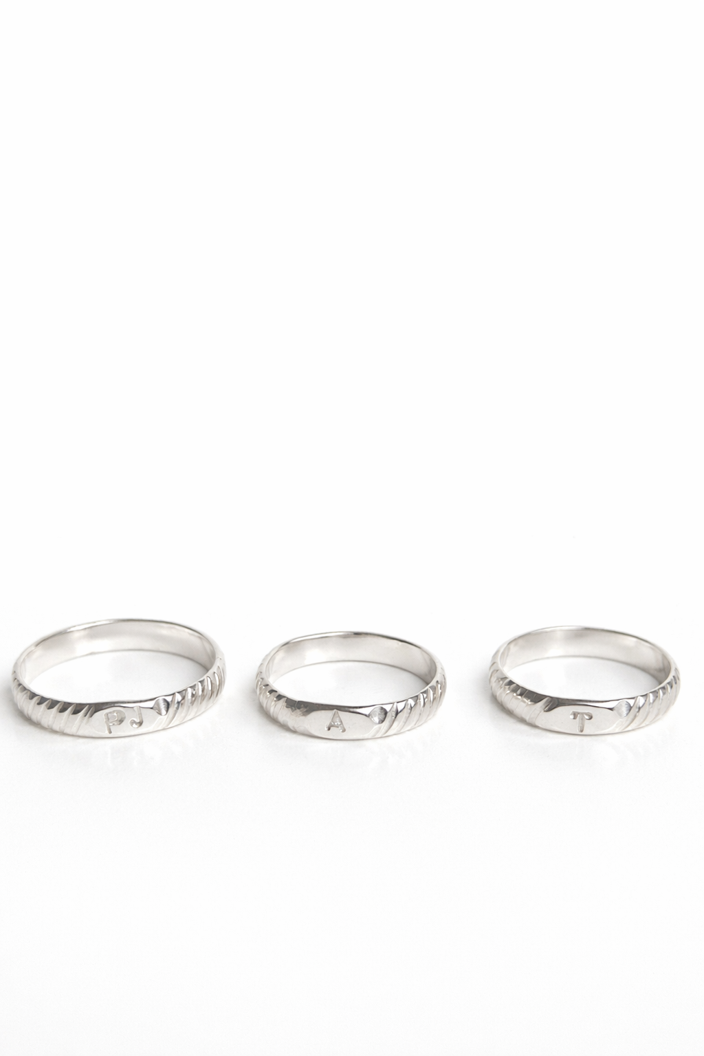 Crafted in 925 sterling silver or gold filled, each ring is stamped with one or two initials, creating a modern personal ringĀ designed to be worn every day.